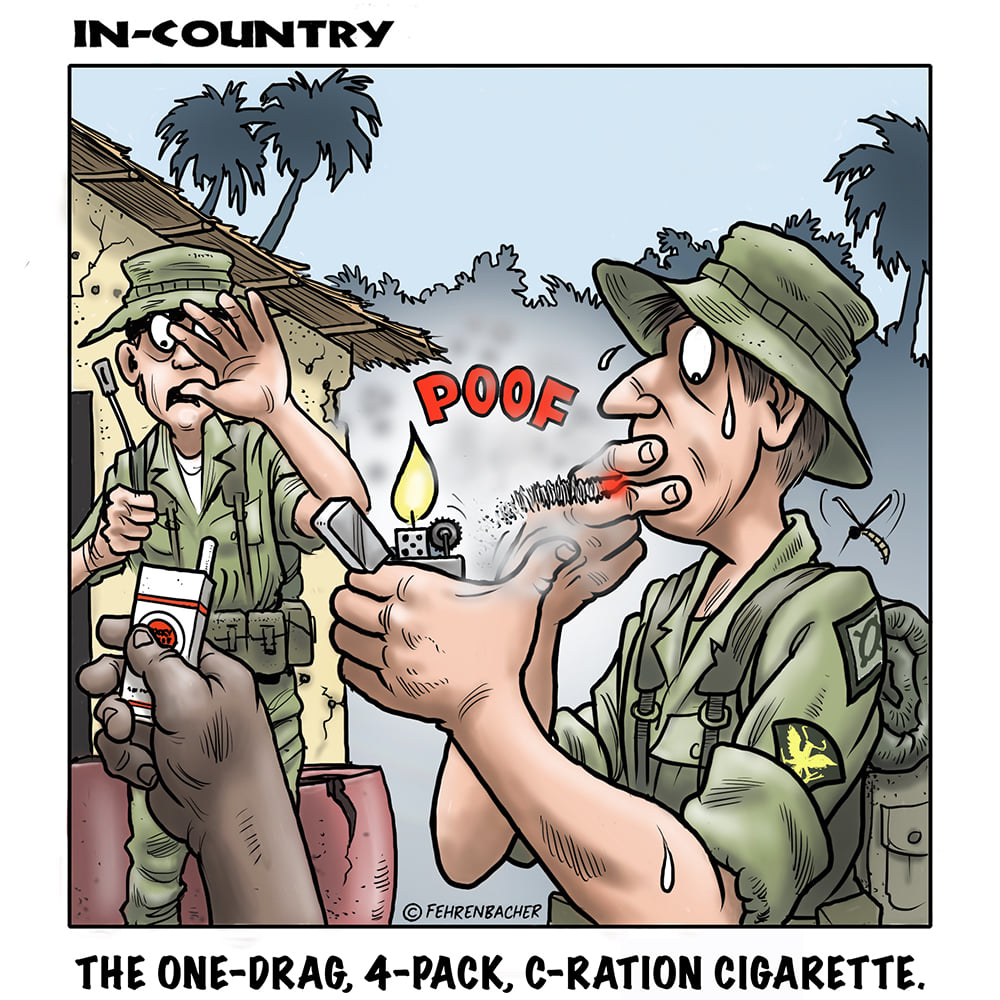 Phil enlisted in the Army in 1965 where you served for years in Vietnam. He became a graphic designer and has worked for the state of Oregon for 26 years. He retired in 2003 and started the Cartoon "In-Country". The cartoons reflect his experiences during his tour of duty in South Vietnam.