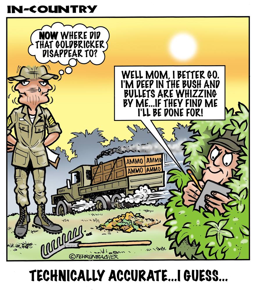 Phil enlisted in the Army in 1965 where you served for years in Vietnam. He became a graphic designer and has worked for the state of Oregon for 26 years. He retired in 2003 and started the Cartoon "In-Country". The cartoons reflect his experiences during his tour of duty in South Vietnam.